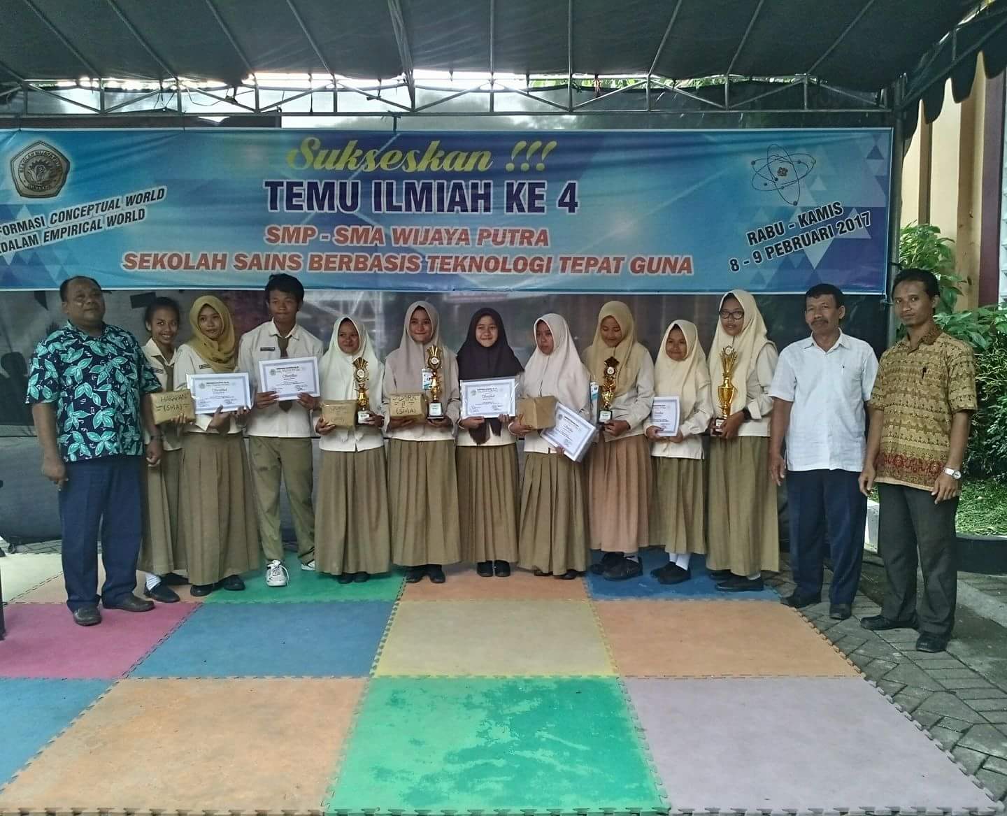 Temu ilmiah ke-4 SMP - SMA Wijaya Putra Surabaya dilaksanakan pada tanggal 8 & 9 Februari 2017 kali ini dengan tema Transformasi Conceptual World kedalam Empirical world yang diselenggarakan secara rutin dengan menyuguhkan hasil karya teknologi tepat guna dari seluruh siswa SMP kelas 7 & 8 serta SMA kelas 10 & 11 sebagai aplikasi materi pelajaran yang di terima selama Proses Belajar Mengajar (PBM) dengan jumlah 30 judul penelitian SMP dan 30 Judul penelitian SMA. Temu ilmiah ini di hadiri para orang tua wali siswa SMP dan SMA Wijaya Putra . kami ucapkan terima kasih atas kerjasama beserta kunjungan wali siswa yang ikut mendukung suksesnya kegiatan temu ilmiah ini, temu ilmiah ini juga sebagai pijakan awal untuk mengikuti lomba Karya Ilmiah di tingkat kota, regional maupun Nasional.